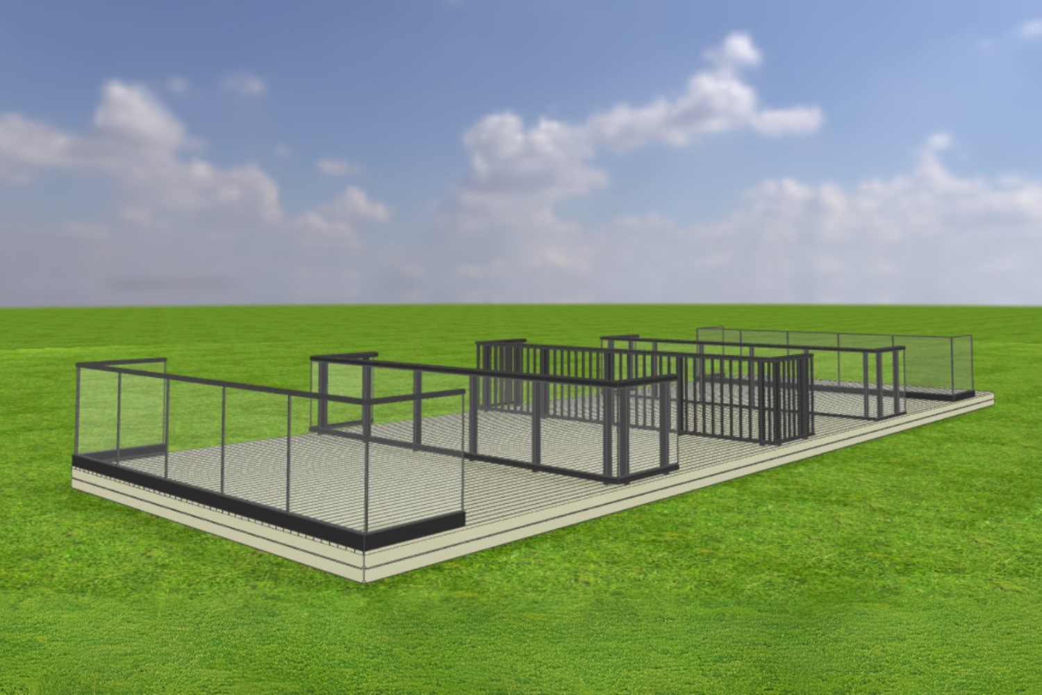 Balustrade’s geometry might follow terrace edge, so shapes can vary a lot. Height of balustrade as well as fixing method can be chosen. Customers are also willing to configurate colours and glass options.